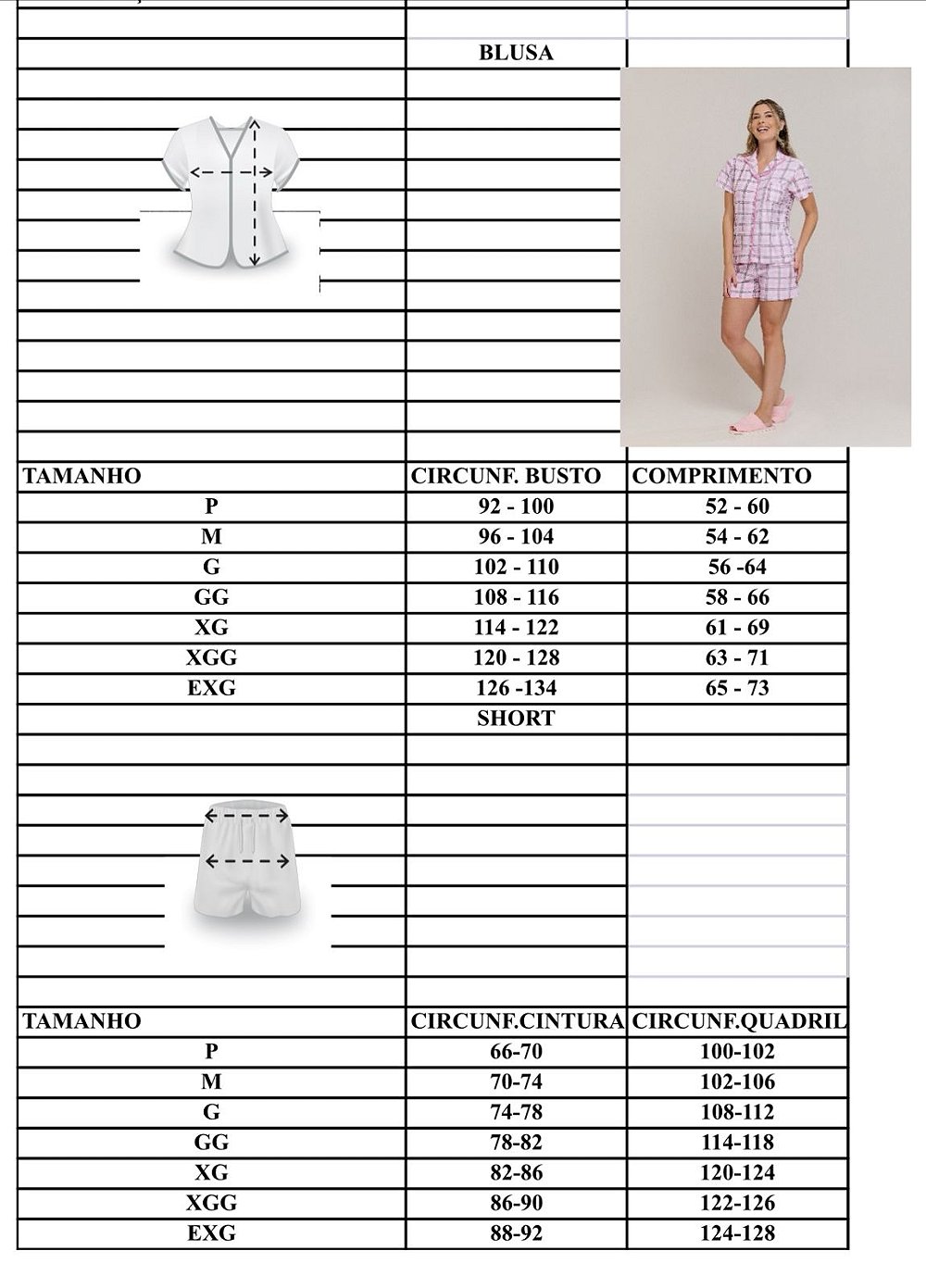 Pijama feminino modelo americano, com botões frontais e bolsinho na blusa, acompanhado de um short super confortável. A estampa xadrez em tons de rosa e azul traz um toque delicado e moderno, perfeito para quem ama ficar estilosa até em casa.
