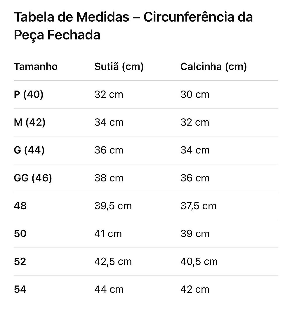 • Bojo casca (G, GG, 48, 50): sustentação sem aumentar o busto